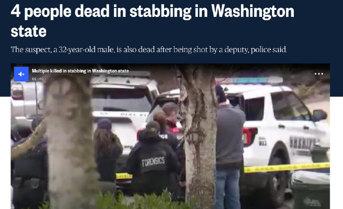 【#华盛顿发生持刀伤人事件致4人死#】