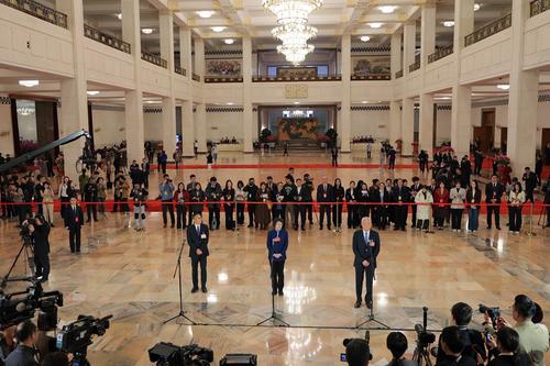 在杨柳青古镇,“何以中国·和合共生”媒体采访团成员们见到了国家级非物质文化遗产代表性传承人、杨柳青老字号“玉成号画庄”第六代传承人霍庆顺。他向记者们描述起鼎盛时期的盛况:“曾经,杨柳青镇内有300多家年画作坊,3000多人从事年画相关工作,东大街、河沿大街、估衣街等街道形成‘家家会点染,户户擅丹青’的繁荣景象。”