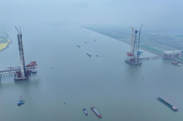 池州长江公铁大桥北主塔封顶