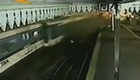 监控拍下三辆火车迎面相撞惊险一幕