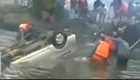 实拍众人用木筏绳索打捞落水校车