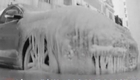 轿车一夜成"冰雕" 车主淡定等冰融