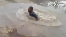 美青年为打赌跳“浅”水坑被淹没