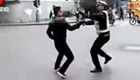 实拍南昌违章摩托司机挥刀追砍交警