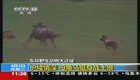 实拍母角马护犊情深 挺身战土狼