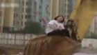 女业主讨说法被挖掘机吊至空中