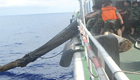 实拍中方公务船打捞越方布设的障碍物