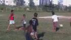 实拍里约孩子郊外光脚踢球