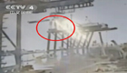 实拍台湾高雄港一吊车吊臂断裂翻覆