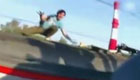 俄罗斯熊孩子在高速行驶火车车顶间来回跳跃