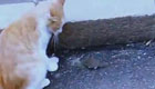 市民手机拍摄猫和老鼠街头嬉闹