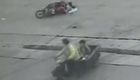 孩子被撞飞跌进肇事三轮