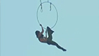 女演员倒挂直升机演杂技