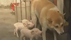 狗妈妈收养三只猪宝宝