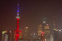 上海东方明珠亮起“蓝白红”灯