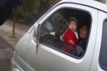 女子一手抱娃一手开车