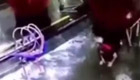 洗车刷缠绕男子不停旋转