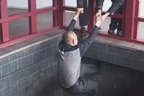 实拍壮汉练拳遭爆摔