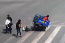 监拍两夫妻高速路"捡"生猪 费劲拖进后备箱