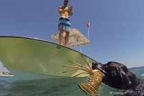 实拍宠物犬跳海捕龙虾