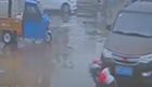 监拍两名儿童被卷入车底