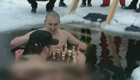 俄罗斯男子泡冰水下象棋