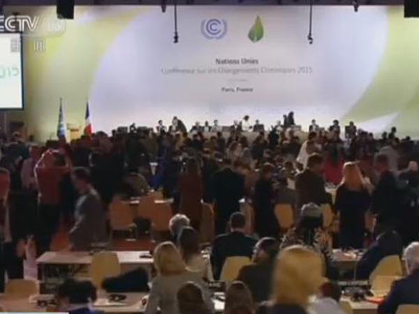 全球气候变化新协定达成 在场代表拥抱庆祝