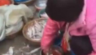 摊贩给海鱼补妆 被拍摄仍淡定涂抹