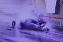 油门当刹车!男子驾车破墙驶入楼房二楼