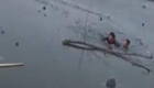 实拍警民冰窟合力救人