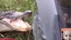 实拍鳄鱼一口咬掉汽车保险杠