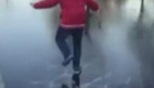 小伙玩“冰上飘” 用力过猛掉进冰窟窿