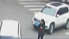 女子过马路打电话险遭碾压