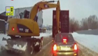 实拍挖掘机"帮助"小轿车