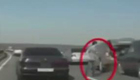 实拍男子高速路下车看热闹 被身后车辆撞飞