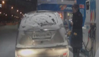 小车行驶中遇“天外飞冰” 挡风玻璃被砸粉碎