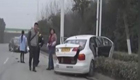 女子开车玩手机 追尾教练车
