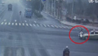 两男子骑摩托车闯红灯被撞飞
