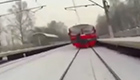 实拍男子雪地里拉列车滑行