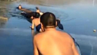 两人落入冰窟 众人匍匐冰面施救