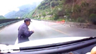 男子为赌气飞身扑汽车