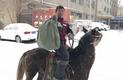 小伙雪天骑马送快递