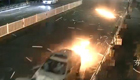 轿车撞散护栏火花四射