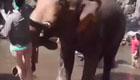 大象洗澡气不顺 怒甩美国女游客