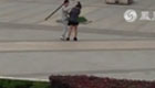 实拍足球流氓组队当街约架群殴