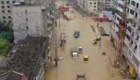 航拍洪水冲击石阡县城 山洪淤泥淹没城区